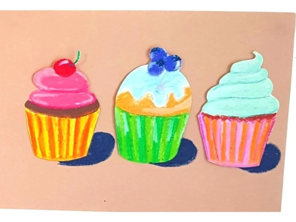 Oil pastels on craft paper.Learn how to draw cupcakes by Wayne Thiebaud using oil pastel techniques.